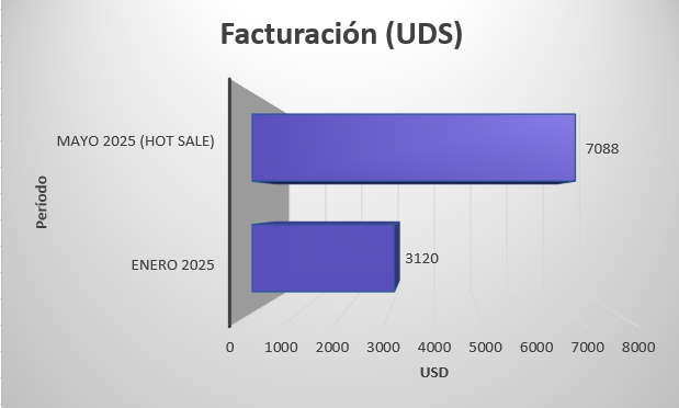 La facturación durante el Hot Sale superó los 7.000 USD, más del doble que en enero. Este crecimiento estuvo impulsado por la integración de campañas, descuentos estratégicos y una comunicación omnicanal sostenida durante todo el evento.